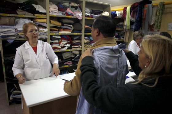 La Cruz Roja tiene sus reglas, sí, y una de ellas es que el ropero es algo más que eso. Allí, entre montones de zapatos, percheros repletos y estantes ordenados, se asesora, se da conversación y consejo y, de nuevo, no se atiende a nadie que no venga derivado de los servicios sociales públicos. ¿A nadie? Una de las normas de esta histórica organización humanitaria es que las reglas a veces hay que saltárselas. De otro modo, el ecuatoriano Eugenio no sería uno de los 4.000 atendidos al año en este ropero. Pero Nunci —Anunciación Cuñado Alcalde, la misma que fundó este almacén solidario hace 25 años— levanta la mano magnánima y el hombre podrá llevarse un par de buenos jerséis para cuando le llamen a recoger naranjas a Valencia. Si hay suerte. Mientras, la nevera de casa está vacía, y el hijo de Eugenio “es el único que no tiene su libro de inglés”.