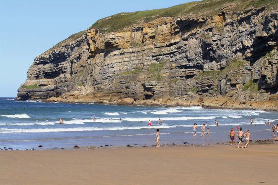 El urbanizado descenso a la playa de Luaña (Cóbreces), muy frecuentada y próxima a Comillas, hace pensar en lo peor. Pero es llegar y quedarse estupefacto por este fino arenal de medio kilómetro traspasado por verdes laderas; dotado con dunas junto al aparcamiento, y en la vertiente oriental, una peculiar formación rocosa, denominada La Peñona, le da otro de sus elementos característicos.