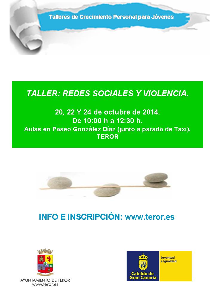 REDES SOCIALES Y VIOLENCIA, que tendrá lugar los días 20, 22 y 24 de octubre de 2014, de 10:00 h a 12:30 h, en el Aula ubicada en Paseo González Díaz (junto a la parada de Taxi). TEROR.