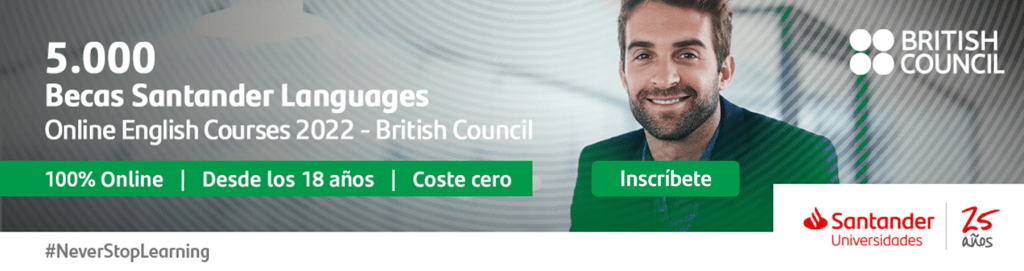 ¿Te planteas acceder al mercado internacional de tu industria? ¿Buscas una experiencia profesional global? Si la respuesta es sí y dada la gran acogida que tuvieron el año pasado, Banco Santander vuelve a lanzar 5.000 Becas Santander Language | Online English Courses 2022 – British Council para el refuerzo del inglés profesional.