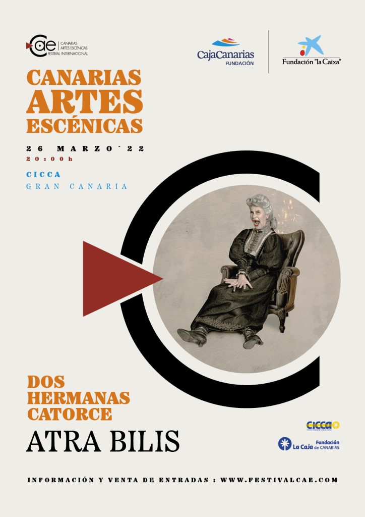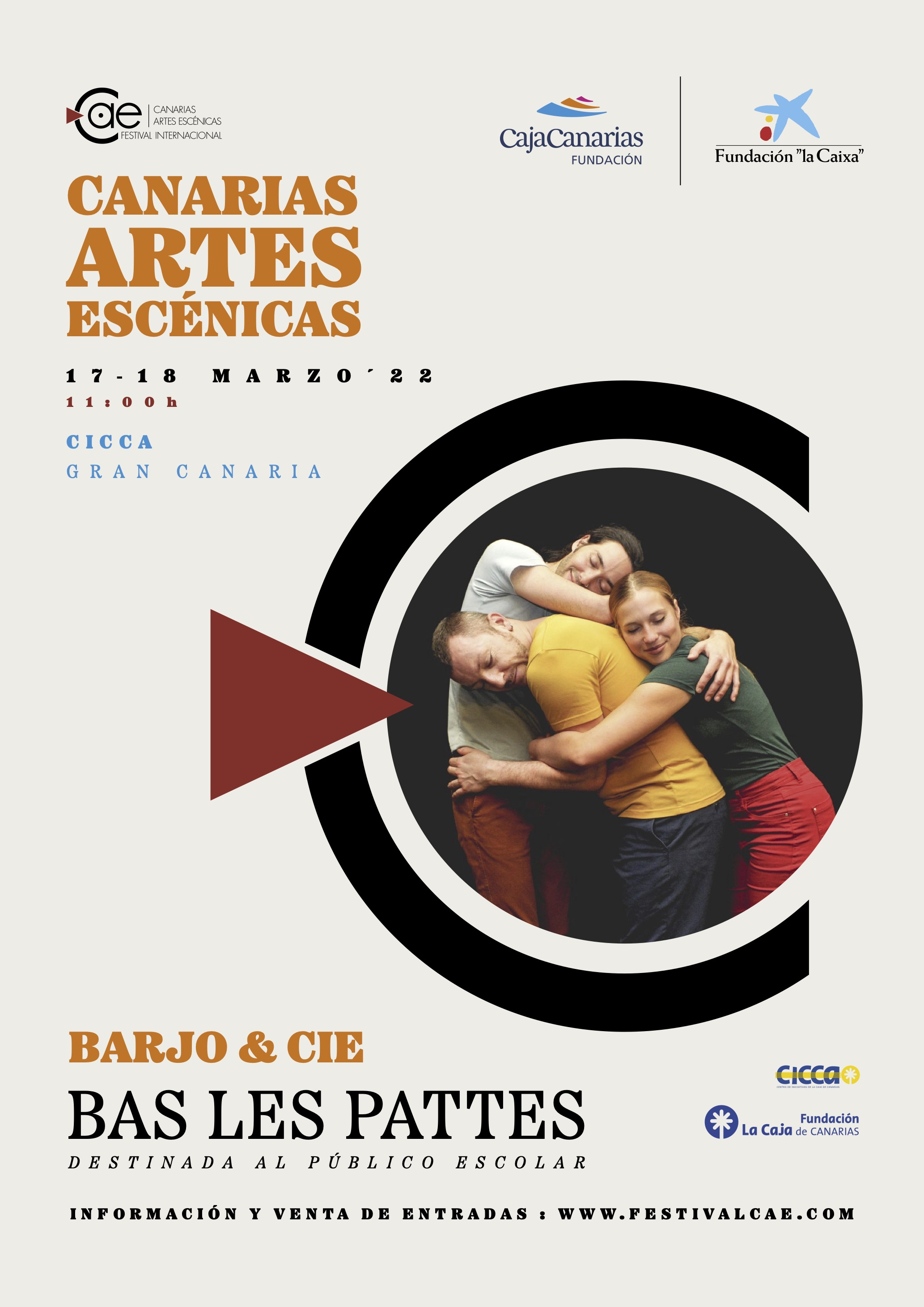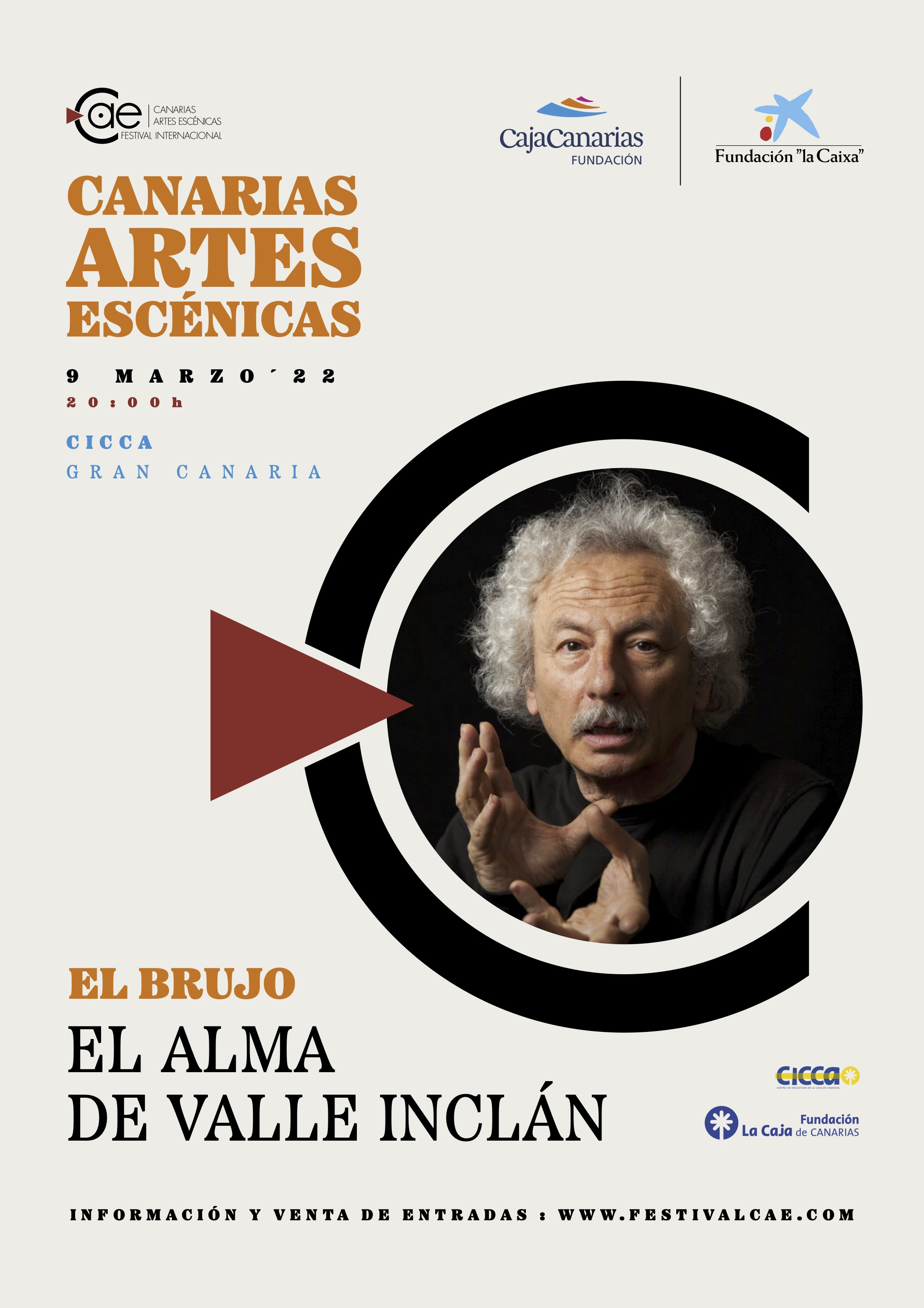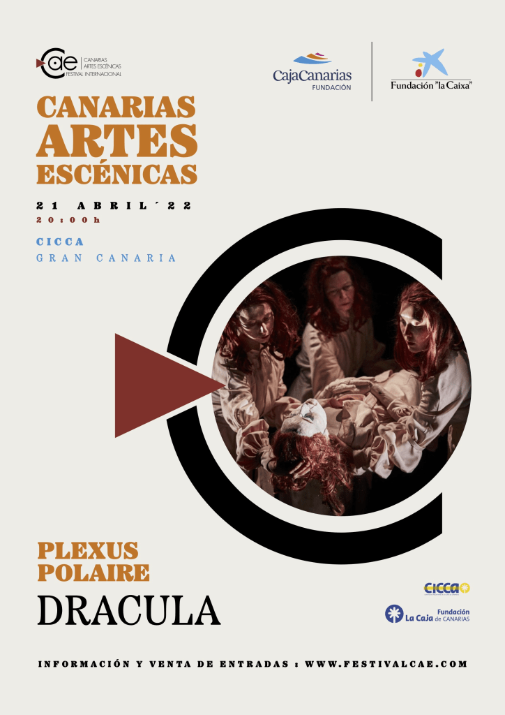“La quinta edición del Festival Internacional “Canarias Artes Escénicas” CAE en el CICCA, que presentan La Fundación CajaCanarias y la Fundación “la Caixa” trae a nuestro escenario 4 propuestas teatrales con compañías artísticas de prestigio internacional que desplegarán sus más recientes propuestas escénicas: comenzando el 9 de marzo, «El Brujo» presentará “El Alma de Valle Inclán”; el 17 y 18 de marzo, Barjo & Cie presentarán las funciones para escolares “Bas Les Pattes” ; el día 26 de marzo tendremos en escena “Atra Bilis”, y cerrando el Festival la obra «Drácula» de Plexus Polaire, el 21 de abril. .