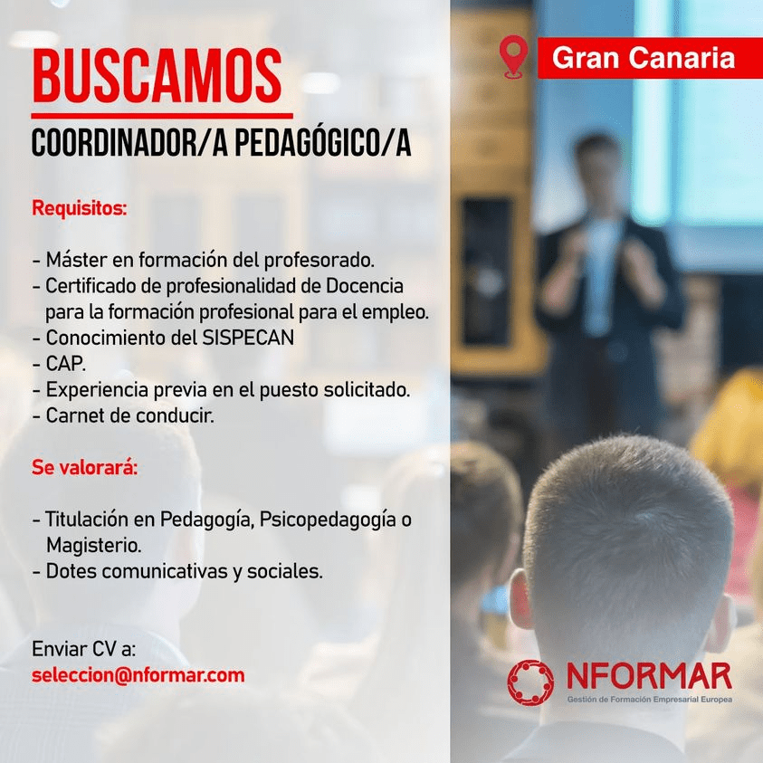 Nformar Canarias busca coordinador/a pedagógico/a para Gran Canaria.