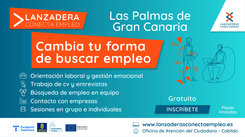 La Lanzadera Conecta Empleo de Las Palmas de Gran Canaria comenzará a finales de septiembre y estará operativa hasta febrero de 2023, ofreciendo de forma gratuita orientación laboral y asesoramiento a personas en desempleo.