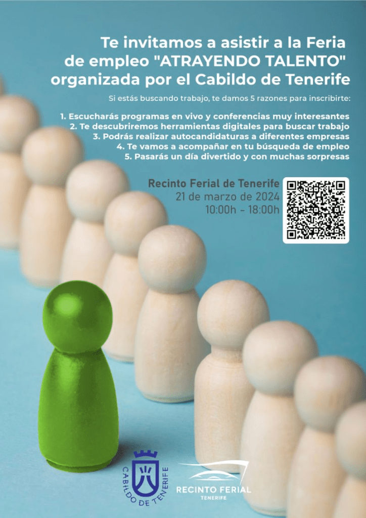 No te la pierdas e inscríbete ya a la Feria «ATRAYENDO TALENTO»🧲 organizada por el Cabildo de Tenerife y Recinto Ferial Inscríbete escaneando el QR de la imagen.