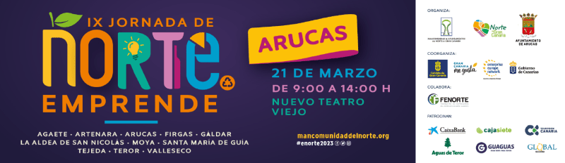Dentro del programa de actividades complementarias de la Feria se desarrollarán la IX Jornada «Norte Emprende» el martes 21 de marzo en el Nuevo Teatro Viejo de Arucas.