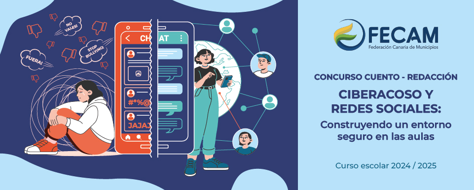 La Federación Canaria de Municipios (FECAM), a través de su Comisión de Cooperación, Juventud, Igualdad y Diversidad, pone en marcha una nueva edición del CONCURSO CUENTO REDACCIÓN “CIBERACOSO Y REDES SOCIALES: Construyendo un entorno seguro en las aulas” para el curso escolar 2024/2025, cuya finalidad es despertar el interés por la redacción narrativa, fomentar la imaginación y creatividad, así como fortalecer el hábito de escritura y lectura de los/as participantes.