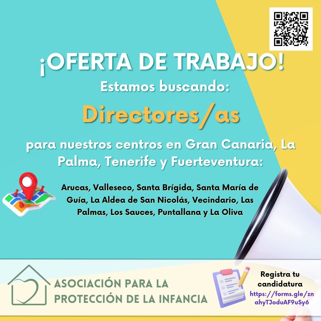 Estamos buscando profesionales para nuestros centros de protección de menores ubicados en Gran Canaria, La Palma, Tenerife y Fuerteventura.